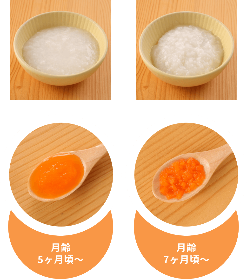 赤ちゃんが食べやすいよう、月齢に合わせて大きさやかたさを調整しています。